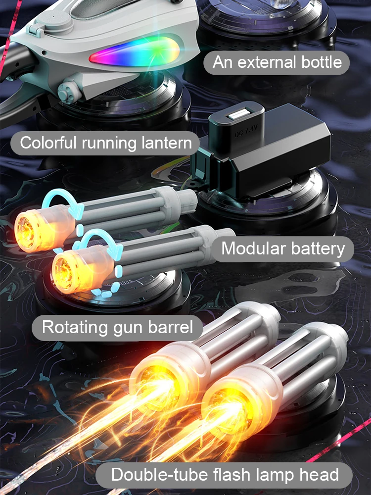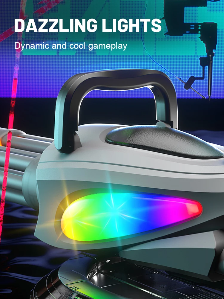 Electric LED Rotating Barrel Gatling Water Gun Toy Automatic Spray Water Pistol Blaster Cannon Pool Summer Toy for Kids Adult